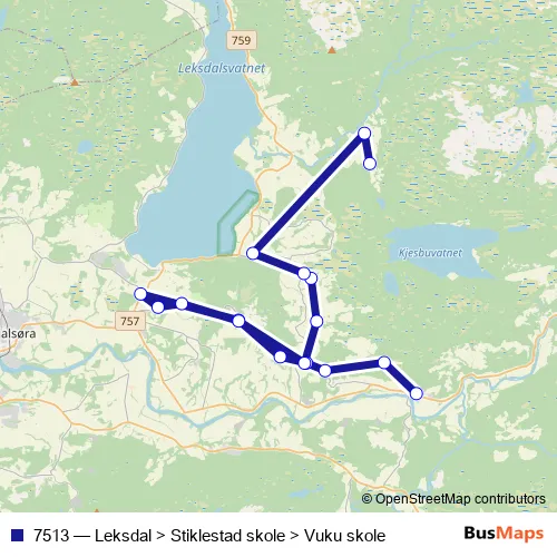Bus 7513 - Leksdal > Stiklestad skole > Vuku skole in Verdal: Stops & Timetable