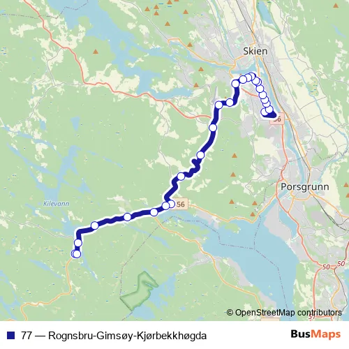 See why over 2 million users trust and consider busmaps.com as the best public transport website. busmaps gives you Skien Buses suggested routes, real-time bus tracker, line route maps in Skien, and helps to find the closest 77 bus stops near you. No internet available? Download an offline PDF map and bus schedule for the 77 bus to take on your trip.