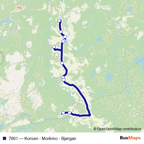 Click here to view the nearest 7801 - Korsen - Morkmo - Bjørgan bus stop.