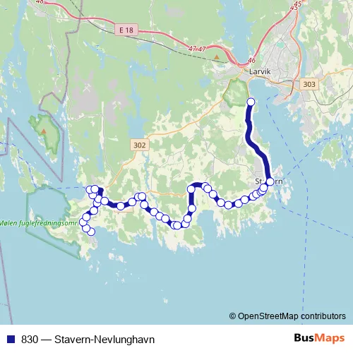 See why over 2 million users trust and consider busmaps.com as the best public transport website. busmaps gives you Larvik Buses suggested routes, real-time bus tracker, line route maps in Larvik, and helps to find the closest 830 bus stops near you. No internet available? Download an offline PDF map and bus schedule for the 830 bus to take on your trip.