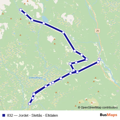 Bus 832 - Jordet - Slettås - Eltdalen: Full Schedule in Innbygda