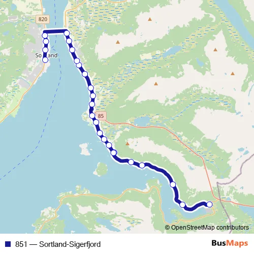 Bus 851 - Sortland-Sigerfjord in Sortland: Stops & Timetable