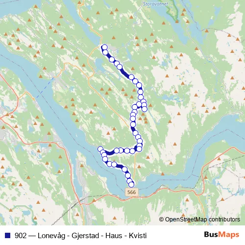 Bus 902 - Lonevåg - Gjerstad - Haus - Kvisti in Lonevag: Stops & Timetable