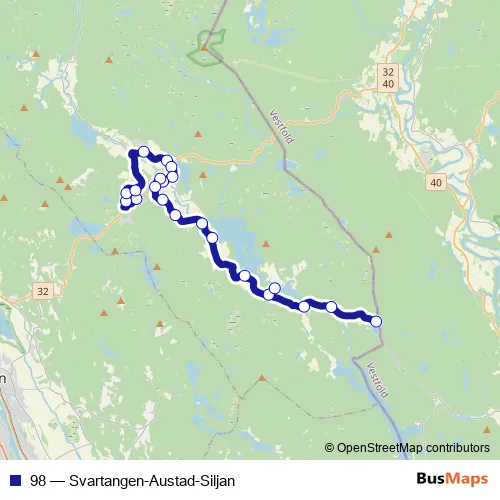 Bus 98 - Svartangen-Austad-Siljan in Siljan: Stops & Timetable