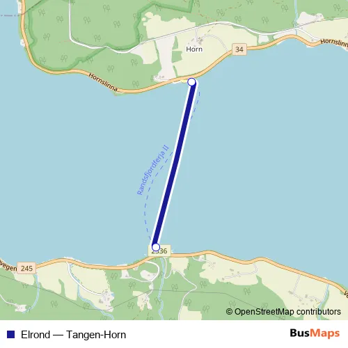 The first stop of the Elrond ferry route is Tangen ferjekai and the last stop is Horn ferjekai. Elrond (Tangen-Horn) is operational during hver dag.