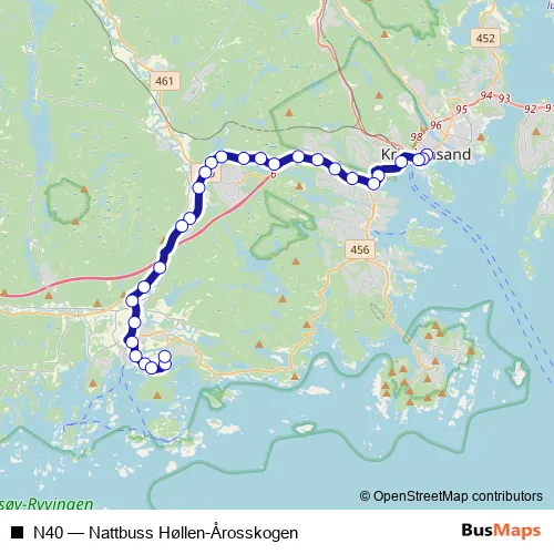 See why over 2 million users trust and consider busmaps.com as the best public transport website. busmaps gives you Kristiansand Buses suggested routes, real-time bus tracker, line route maps in Kristiansand, and helps to find the closest N40 bus stops near you. No internet available? Download an offline PDF map and bus schedule for the N40 bus to take on your trip.