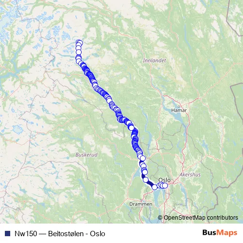 Click here to view the nearest Nw150 - Beitostølen - Oslo bus stop.