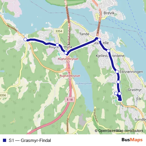 Bus S1 - Grasmyr-Findal: Full Schedule in Langesund
