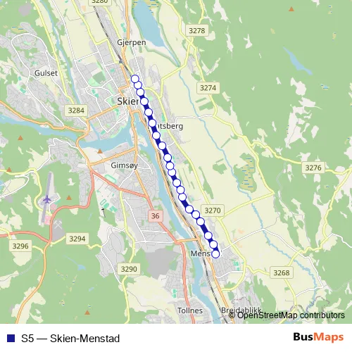 Bus S5 - Skien-Menstad: Full Schedule in Skien