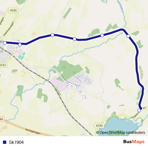 The first stop of the Sk1904 bus route is Vigrestad skule and the last stop is Torshammaren. Sk1904 is operational during på hverdager.