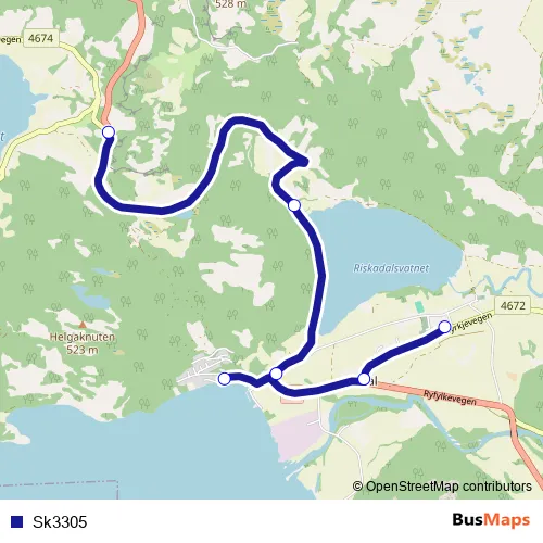The first stop of the Sk3305 bus route is Årdal skule and the last stop is Fisterkrossen. Sk3305 is operational during på hverdager.