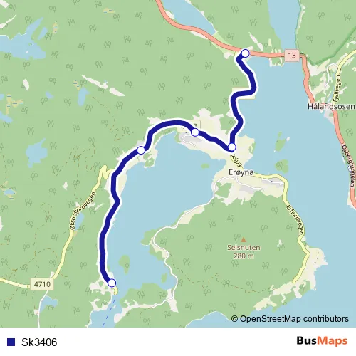 The first stop of the Sk3406 bus route is Erfjord skule and the last stop is Bogsund. Sk3406 is operational during på hverdager.