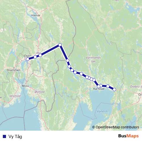 Stationsgatan - Södra Järnvägsgatan - Banvaktarvägen - Bangatan - Stationsvägen - Edanevägen - Järnvägsgatan - Källarmästare Olssons väg - Västra Järnvägsgatan - Biskop Gunnerus’ gate