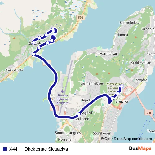 Click here to view the nearest X44 - Direkterute Slettaelva bus stop.