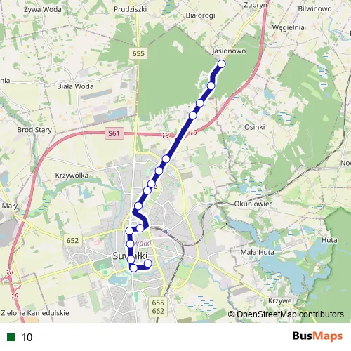 Bus 10 in Suwalki: Stops & Timetable