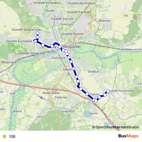 Bus 108 in Gorzow Wielkopolski: Stops & Timetable