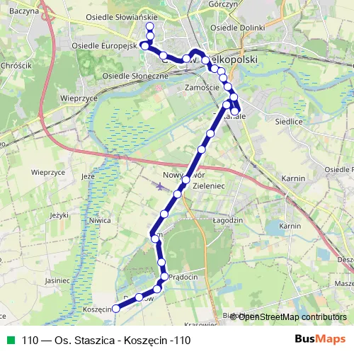 Bus 110 - Os. Staszica - Koszęcin -110 Schedule in Gorzow Wielkopolski