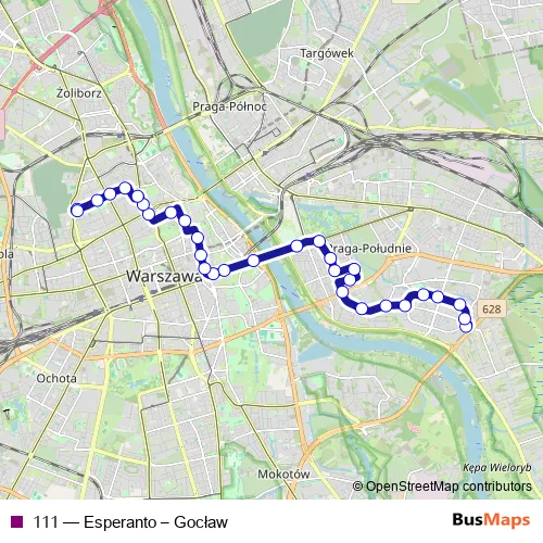 The first stop of the 111 bus route is Gocław and the last stop is Esperanto. 111 (Esperanto – Gocław) is operational during codziennie.