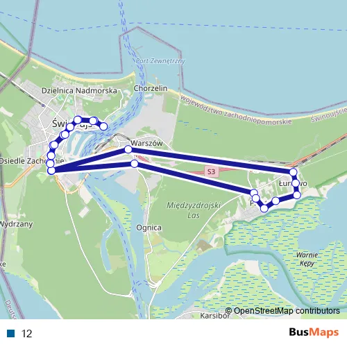 See why over 2 million users trust and consider busmaps.com as the best public transport website. busmaps gives you Swinoujscie Buses suggested routes, real-time bus tracker, line route maps in Swinoujscie, and helps to find the closest 12 bus stops near you. No internet available? Download an offline PDF map and bus schedule for the 12 bus to take on your trip.