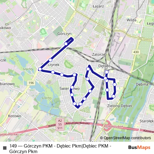 Click here to view the nearest 149 - Górczyn PKM - Dębiec Pkm|Dębiec PKM - Górczyn Pkm bus stop.