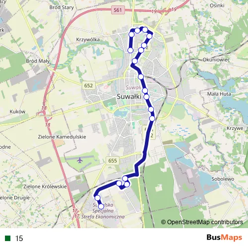 See why over 2 million users trust and consider busmaps.com as the best public transport website. busmaps gives you Suwalki Buses suggested routes, real-time bus tracker, line route maps in Suwalki, and helps to find the closest 15 bus stops near you. No internet available? Download an offline PDF map and bus schedule for the 15 bus to take on your trip.