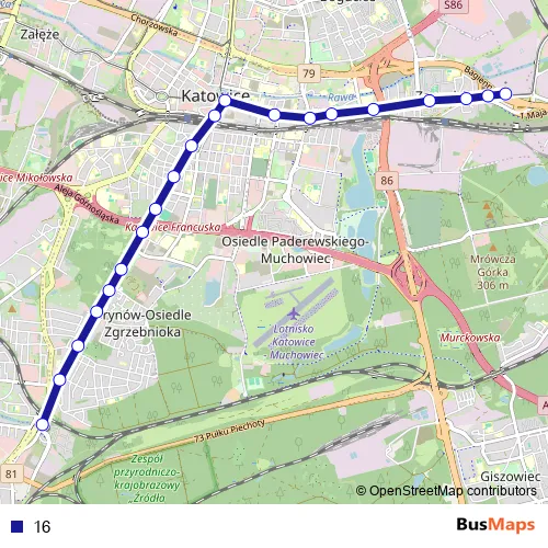 See why over 2 million users trust and consider busmaps.com as the best public transport website. busmaps gives you Katowice Trams suggested routes, real-time bus tracker, line route maps in Katowice, and helps to find the closest 16 tram stops near you. No internet available? Download an offline PDF map and bus schedule for the 16 tram to take on your trip.