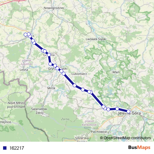 See why over 2 million users trust and consider busmaps.com as the best public transport website. busmaps gives you Gryfow Slaski Buses suggested routes, real-time bus tracker, line route maps in Gryfow Slaski, and helps to find the closest 162217 bus stops near you. No internet available? Download an offline PDF map and bus schedule for the 162217 bus to take on your trip.