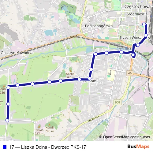 Bus 17 - Liszka Dolna - Dworzec PKS-17: Full Schedule in Czestochowa