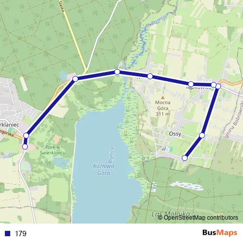 The first stop of the 179 bus route is Ossy Mickiewicza and the last stop is Świerklaniec Park. 179 is operational during w dni robocze.