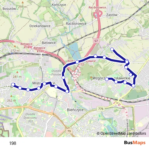 See why over 2 million users trust and consider busmaps.com as the best public transport website. busmaps gives you Krakow Buses suggested routes, real-time bus tracker, line route maps in Krakow, and helps to find the closest 198 bus stops near you. No internet available? Download an offline PDF map and bus schedule for the 198 bus to take on your trip.