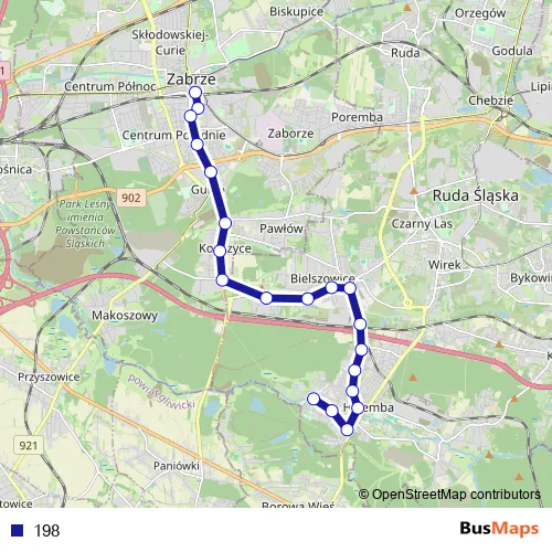 See why over 2 million users trust and consider busmaps.com as the best public transport website. busmaps gives you Zabrze Buses suggested routes, real-time bus tracker, line route maps in Zabrze, and helps to find the closest 198 bus stops near you. No internet available? Download an offline PDF map and bus schedule for the 198 bus to take on your trip.