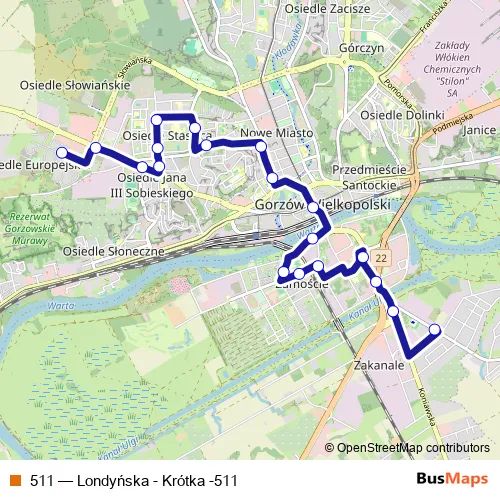 Click here to view the nearest 511 - Londyńska - Krótka -511 bus stop.