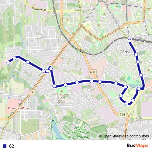 Bus 62 in Lodz: Stops & Timetable