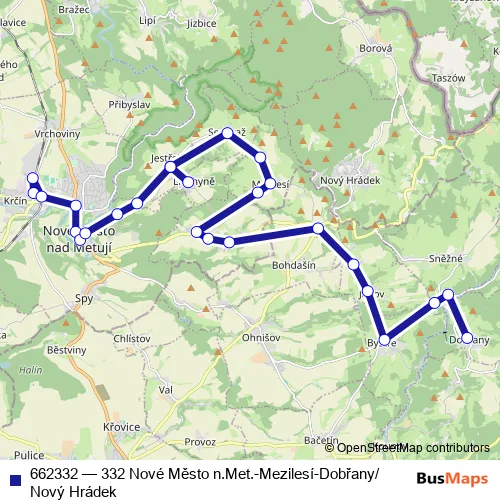 W kierunku powrotnym: Nový Hrádek,nám. – Nové Město n.Met.,žel.st.