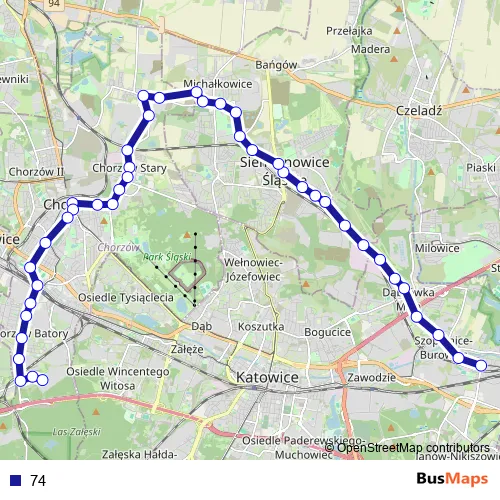 See why over 2 million users trust and consider busmaps.com as the best public transport website. busmaps gives you Katowice Buses suggested routes, real-time bus tracker, line route maps in Katowice, and helps to find the closest 74 bus stops near you. No internet available? Download an offline PDF map and bus schedule for the 74 bus to take on your trip.