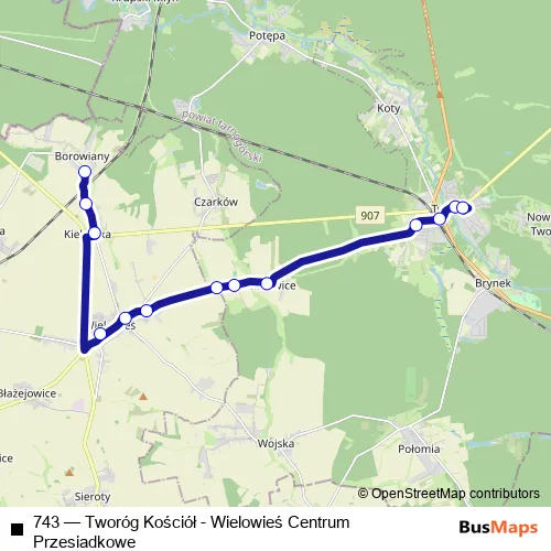Bus 743 - Tworóg Kościół - Wielowieś Centrum Przesiadkowe: Full Schedule in Tworog