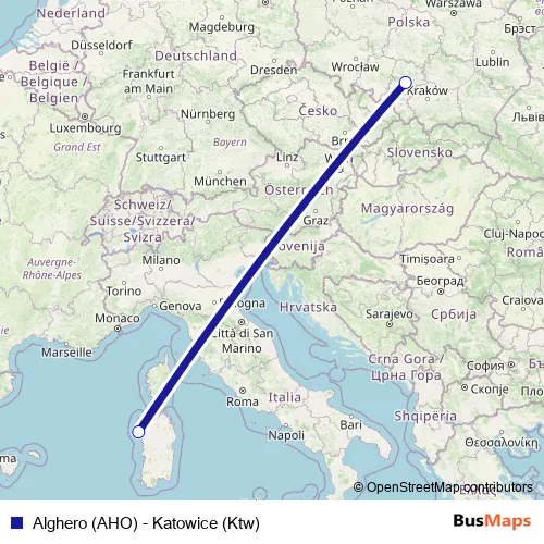 Alghero (AHO) - Katowice (Ktw) air Route Map