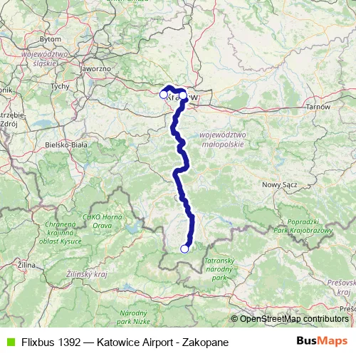 Bus Flixbus 1392 - Katowice Airport - Zakopane in Krakow: Stops & Timetable