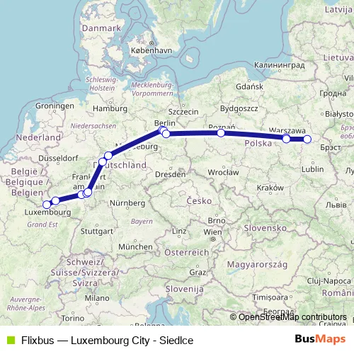 W kierunku powrotnym: Siedlce Transfer Center – Luxembourg P+R Bouillon