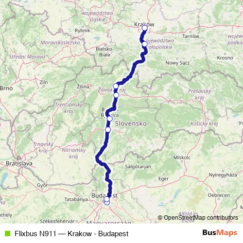 Bus Flixbus N911 - Krakow - Budapest: Full Schedule in Budapest