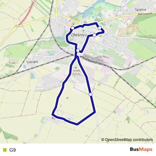 See why over 2 million users trust and consider busmaps.com as the best public transport website. busmaps gives you Olesnica Buses suggested routes, real-time bus tracker, line route maps in Olesnica, and helps to find the closest G9 bus stops near you. No internet available? Download an offline PDF map and bus schedule for the G9 bus to take on your trip.