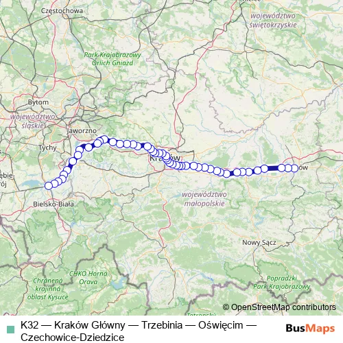 Click here to view the nearest K32 - Kraków Główny — Trzebinia — Oświęcim — Czechowice-Dziedzice rail stop.
