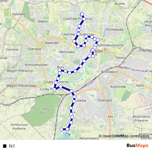 Bus N1 Schedule in Lublin