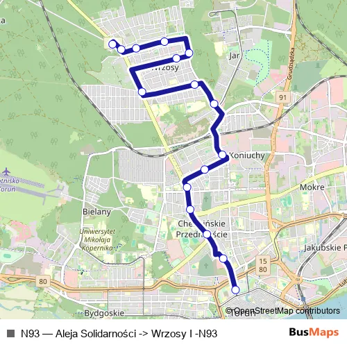 Click here to view the nearest N93 - Aleja Solidarności -> Wrzosy I -N93 bus stop.
