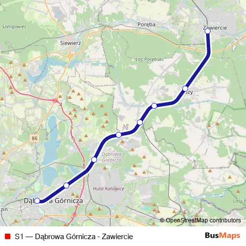 See why over 2 million users trust and consider busmaps.com as the best public transport website. busmaps gives you Zawiercie Rail Services suggested routes, real-time bus tracker, line route maps in Zawiercie, and helps to find the closest S1 rail stops near you. No internet available? Download an offline PDF map and bus schedule for the S1 rail to take on your trip.