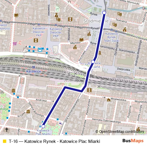 Bus T-16 - Katowice Rynek - Katowice Plac Miarki Schedule in Katowice