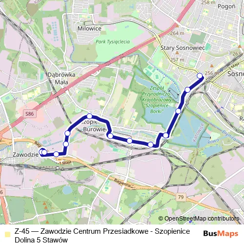 Bus Z-45 - Zawodzie Centrum Przesiadkowe - Szopienice Dolina 5 Stawów: Full Schedule in Katowice