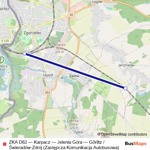 Bus ZKA D62 - Karpacz — Jelenia Góra — Görlitz / Świeradów-Zdrój (Zastępcza Komunikacja Autobusowa): Full Schedule in Zgorzelec
