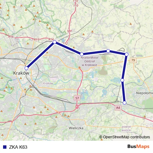 See why over 2 million users trust and consider busmaps.com as the best public transport website. busmaps gives you Krakow Buses suggested routes, real-time bus tracker, line route maps in Krakow, and helps to find the closest ZKA K63 bus stops near you. No internet available? Download an offline PDF map and bus schedule for the ZKA K63 bus to take on your trip.