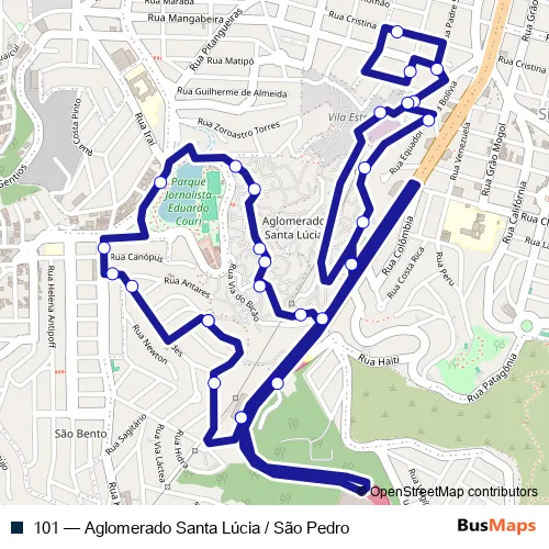 Click here to view the nearest 101 - Aglomerado Santa Lúcia / São Pedro bus stop.